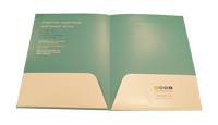 Single Sided - Print coverage to the outside of the folders and the internal pocket faces.